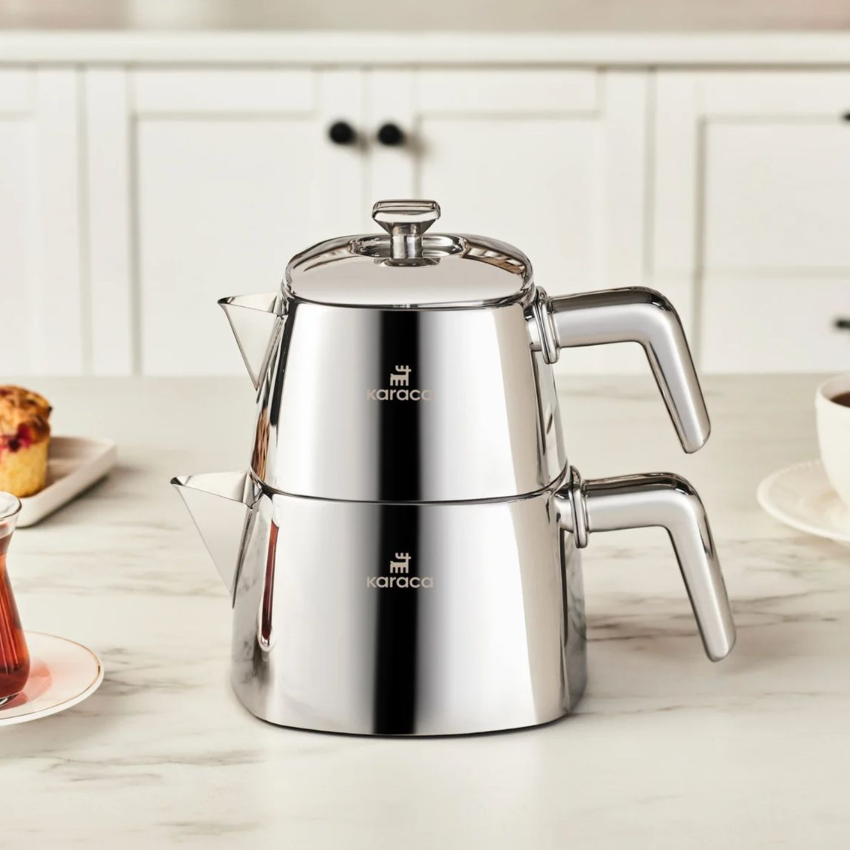 Karaca Brewinox – Théière Turque en Acier Inoxydable – Grande Taille – 2.2L / 3L