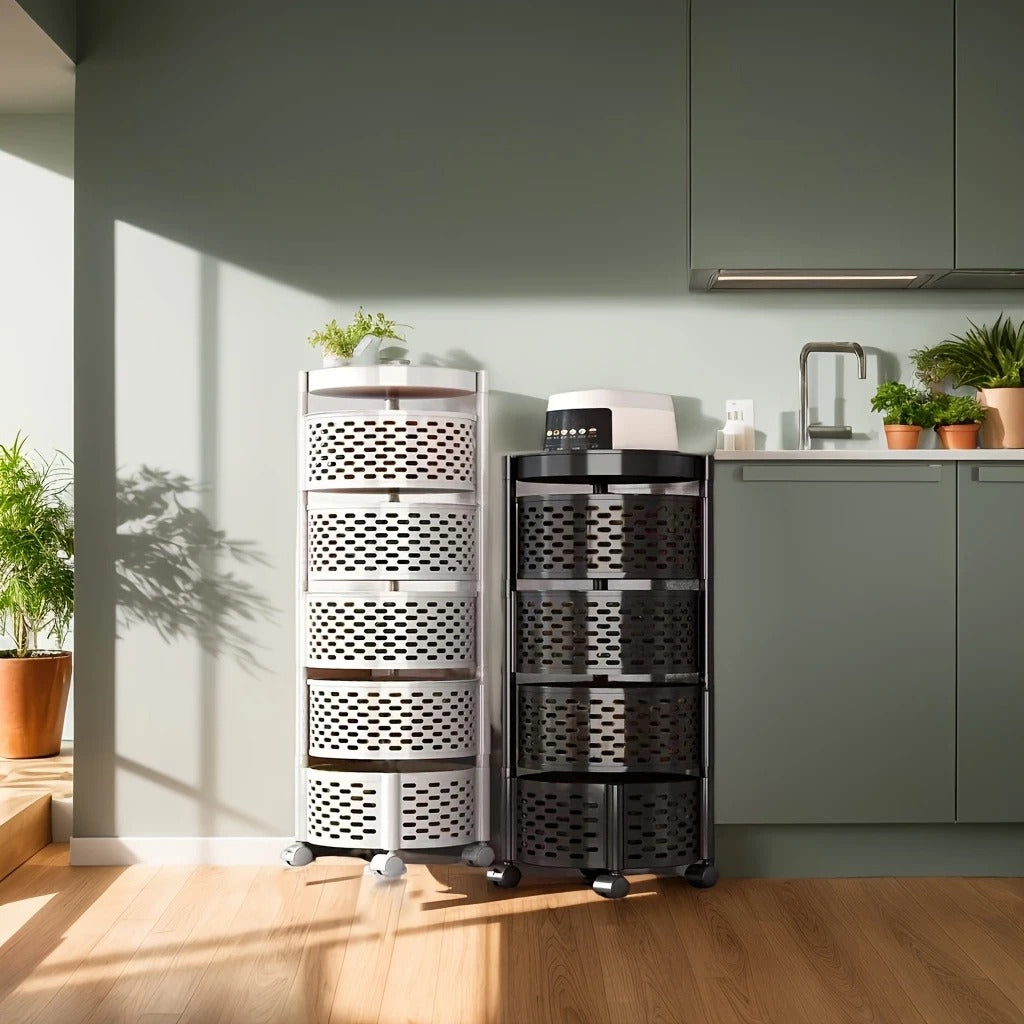 Disponible en noir élégant ou blanc moderne, elle pivote à 360°, roule facilement, et garde vos fruits, légumes ou accessoires toujours à portée de main.