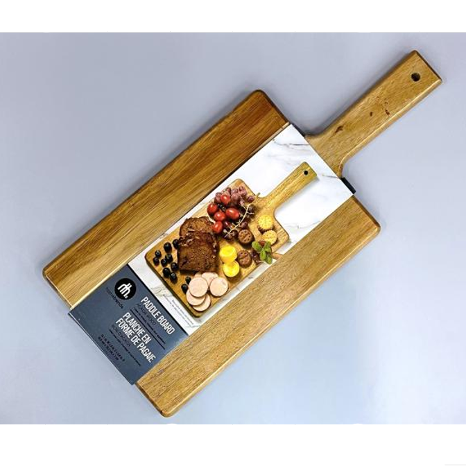 Cette planche de service en bois d’acacia de 18 pouces est idéale pour la présentation élégante de fromages, charcuteries, pains ou amuse-bouches.