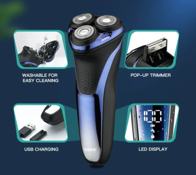 Rasoir électrique professionnel VGR V-306 – 3 têtes, étanche, 500 mAh